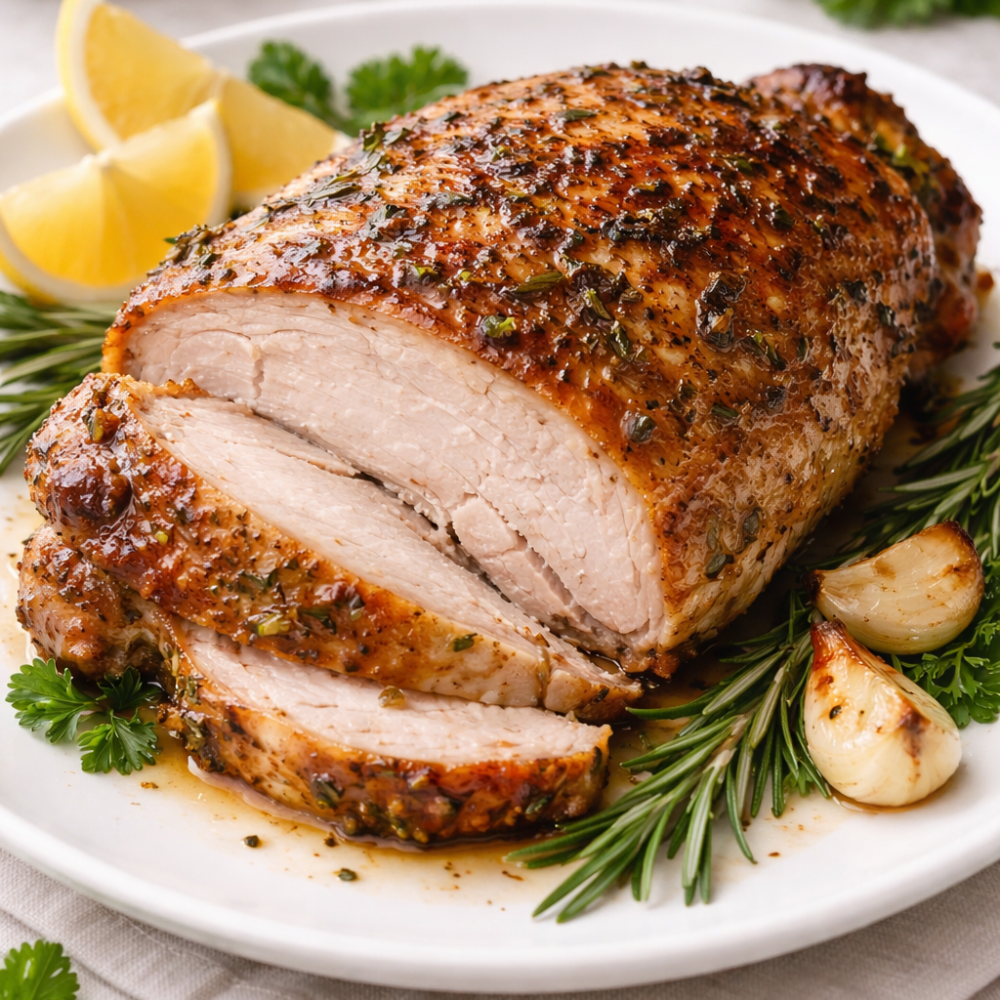Friptură de curcan la cuptor, fragedă și suculentă, gătită lent și asezonată simplu pentru a evidenția gustul natural al cărnii, potrivită pentru o masă echilibrată.