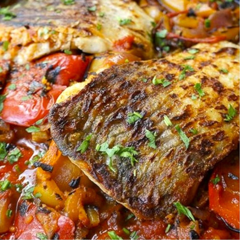 Crap fraged în saramură cu legume și condimente tradiționale, gata de servit. Gust autentic și aromă perfect echilibrată