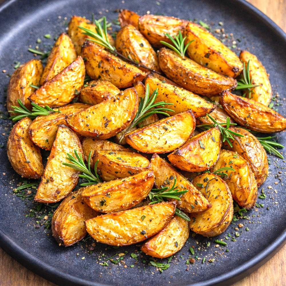 Crocanți la exterior și moi în interior, cu aroma inconfundabilă a rozmarinului, acești cartofi sunt gustarea sau garnitura perfectă pentru orice masă. Simpli, savuroși și irezistibili!