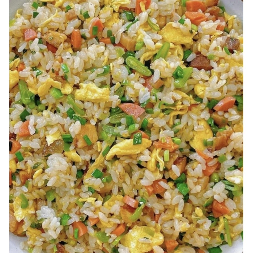 - orez, ouă, morcov, ceapă verde, mazăre, ulei de măsline, sos de soia, sare, piper