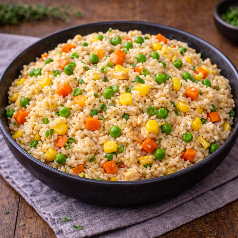 Orez pufos, legume crocante și arome asiatice care se îmbină perfect într-un preparat delicios. Ușor, gustos și plin de energie – o alegere excelentă pentru orice moment al zilei!
