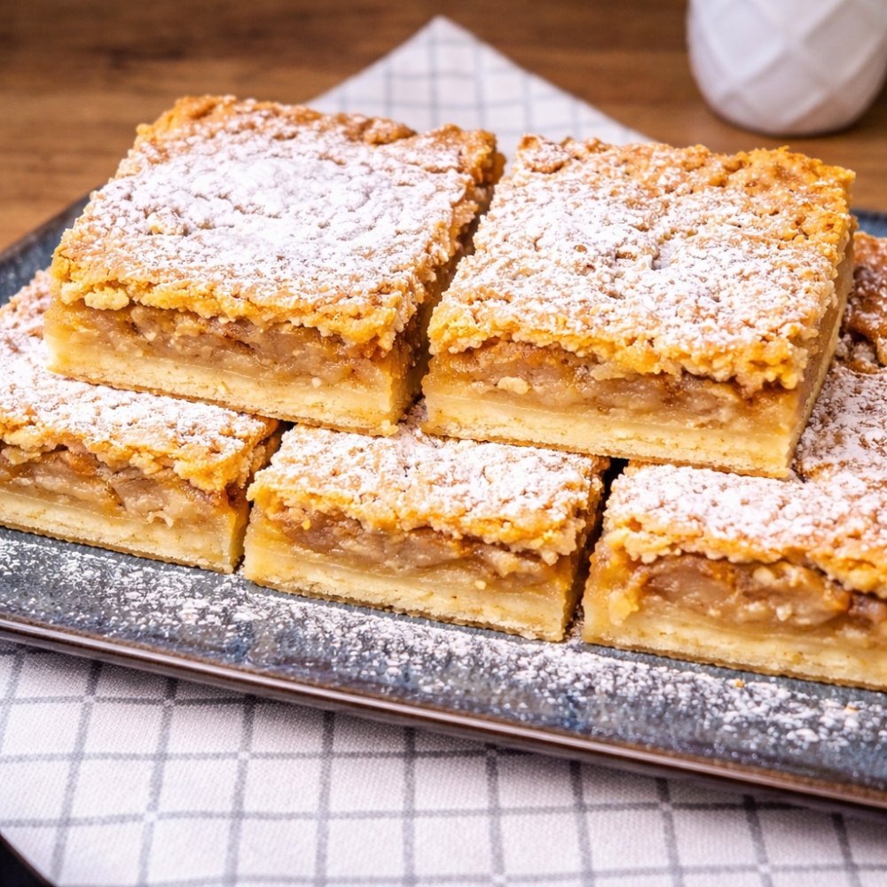 Plăcintă cu mere aromate și scorțișoară, învelită într-un aluat fraged și auriu. Un desert clasic, cald și parfumat, care aduce gustul copilăriei în fiecare mușcătură.