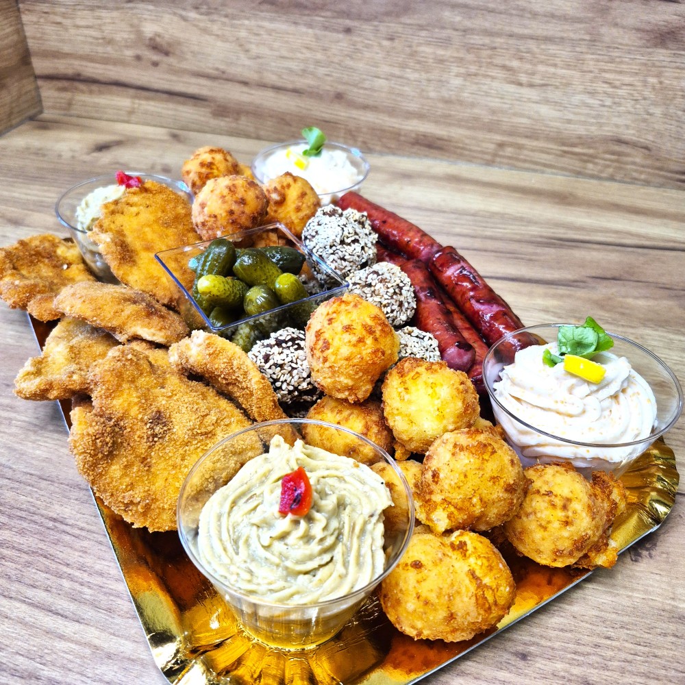 Un platou plin de arome familiare, pregătit exact ca în bucătăria bunicii. Reunește gustări simple, autentice și sățioase, făcute cu grijă și ingrediente curate: aperitive de casă, brânzeturi, mezeluri tradiționale și murături aromate. Este platoul care aduce pe masă nostalgia copilăriei, gustul de odinioară și bucuria meselor petrecute în familie. Perfect pentru orice moment în care vrei să simți căldura și bunătatea mâncării „ca la mama acasă”