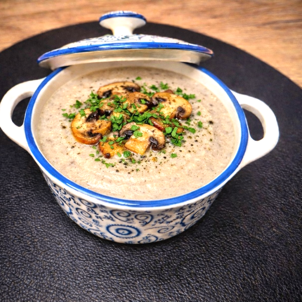 Supa cremă de ciuperci oferă o textură catifelată și un gust intens de ciuperci, perfect echilibrat. Ideală ca aperitiv sau fel principal, pentru momente savuroase și reconfortante.